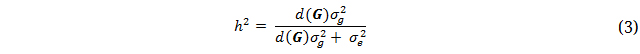 where d(G) is the average of the diagonal elements of the G-matrix, σ2g is additive genetic variance, and σ2e is residual variance.