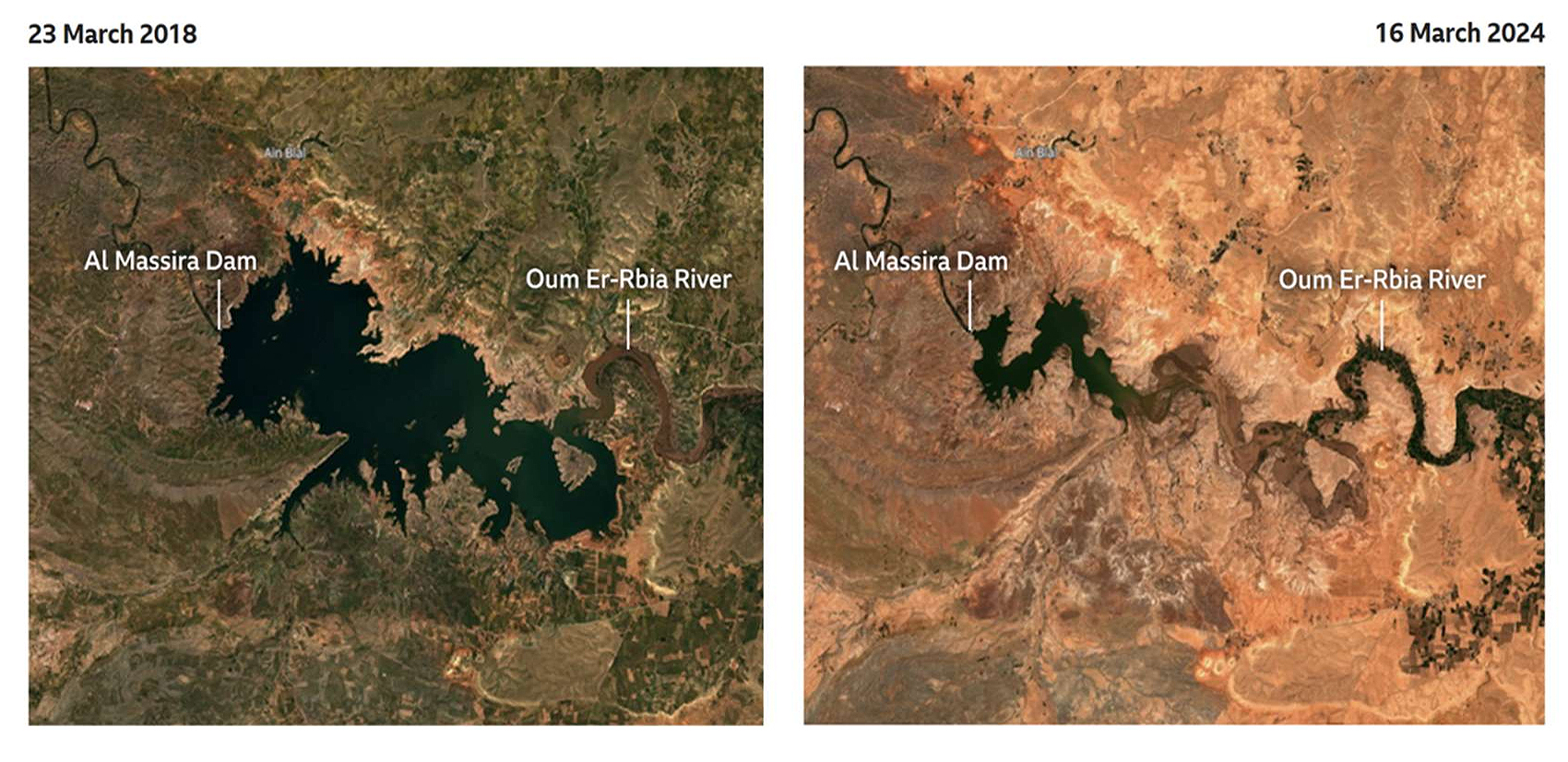 Figure 3. The effect of climate change at Al Massira Dam and its surroundings in Morocco [6].