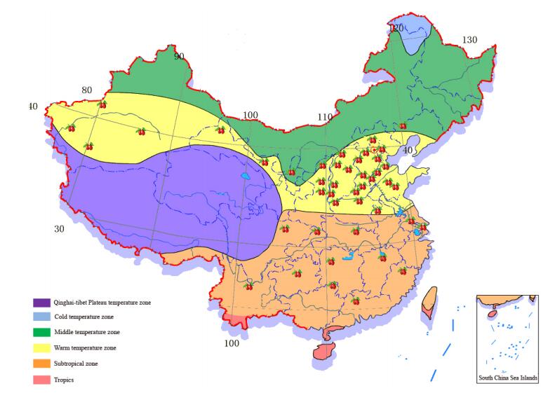 Chinese jujube (Ziziphus jujuba Mill.) is an economically important fruit crop in the genus Ziziphus Mill. of the Rhamnaceae family. The species is native to China, together with another 13 species in the genus of Ziziphus, with its putative center of origin located in the Yellow River basin in northern China [1,2]. There is another cultivated sister species Ziziphus mauritiana (Indian jujube or Indian ber), which is a tropical and subtropical evergreen species [3]. Although the two cultivated Ziziphus species are in different sections of the Genus Ziziphus (Z. mauritiana in Section Perdurans and Z. jujuba in Section Ziziphus), viable embryos were obtained from Z. mauritiana × Z. jujuba crosses, suggesting that there is inter-specific cross compatibility [4]. Jujube is one of the earliest domesticated fruit trees in China, with a utilization history of more than 7000 years [5–7]. It is believed that current cultivars descend from materials originally selected from sour jujubes (Z. jujuba var. spinosa) which are still widely distributed in north, central and southwest China [5,8]. Chinese Jujube is becoming increasingly popular for its outstanding adaptability, nutritious fruits and multipurpose utilization in food and traditional medicine. It is an ideal crop for arid and semiarid areas of the temperate and subtropical regions where other common fruit trees do not grow well. This feature makes jujube an important economic crop for low income regions and contributes significantly to poverty reduction and reforestation in China (Figure 1). Presently it is ranked as the first dry fruit and the seventh fresh fruit tree in China in terms of cultivation area (600,000 ha), with an annual production of more than 11 million metric tons [6]. The market value of the jujube value chain was estimated about $14–16 billion in 2017 [6].
