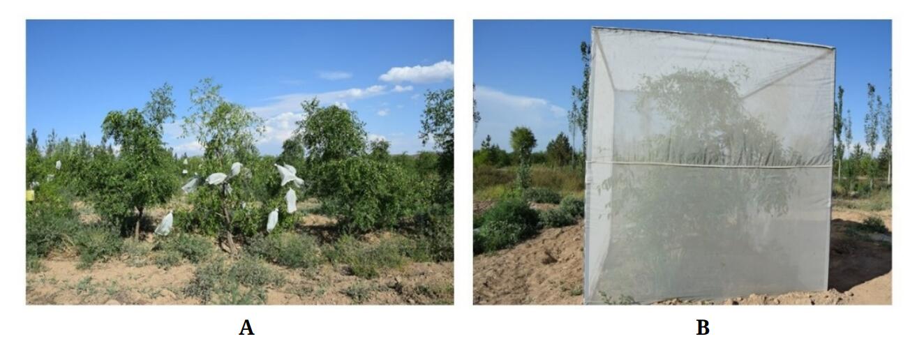 Parallel to the progress in understanding self-incompatibility, a breakthrough has also been made in overcoming the barrier of cross-hybridization using male sterility [6]. Male sterility has been found in at least five Chinese jujube cultivars so far, which provides a key solution for the difficulty in flower emasculation and embryo abortion. In male sterile cultivars, microspores massed and became disaggregated after tetrads so the pollen became abortive. By employing male sterility in controlled crosses, Liu et al. [28] developed a method that combined selection of parental cultivars and planting or grafting parents together with a net covering during the flowering season (Figure 6). Honey bees were used to carry out the controlled pollination. Culture or rescue of young embryos, and molecular identification of hybrids followed as necessary. This strategy was used to obtain hybrid jujube populations [55,56].