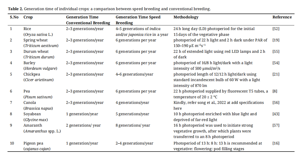 Pasala R, Chennamsetti M, Patil B, Kadirvel P, Geethanjali S, Nagaram S, et al. Revolutionizing Crop Production: The Imperative of Speed Breeding Technology in Modern Crop Improvement. Crop Breed Genet Genom. 2024;6(2):e240003. https://doi.org/10.20900/cbgg20240003