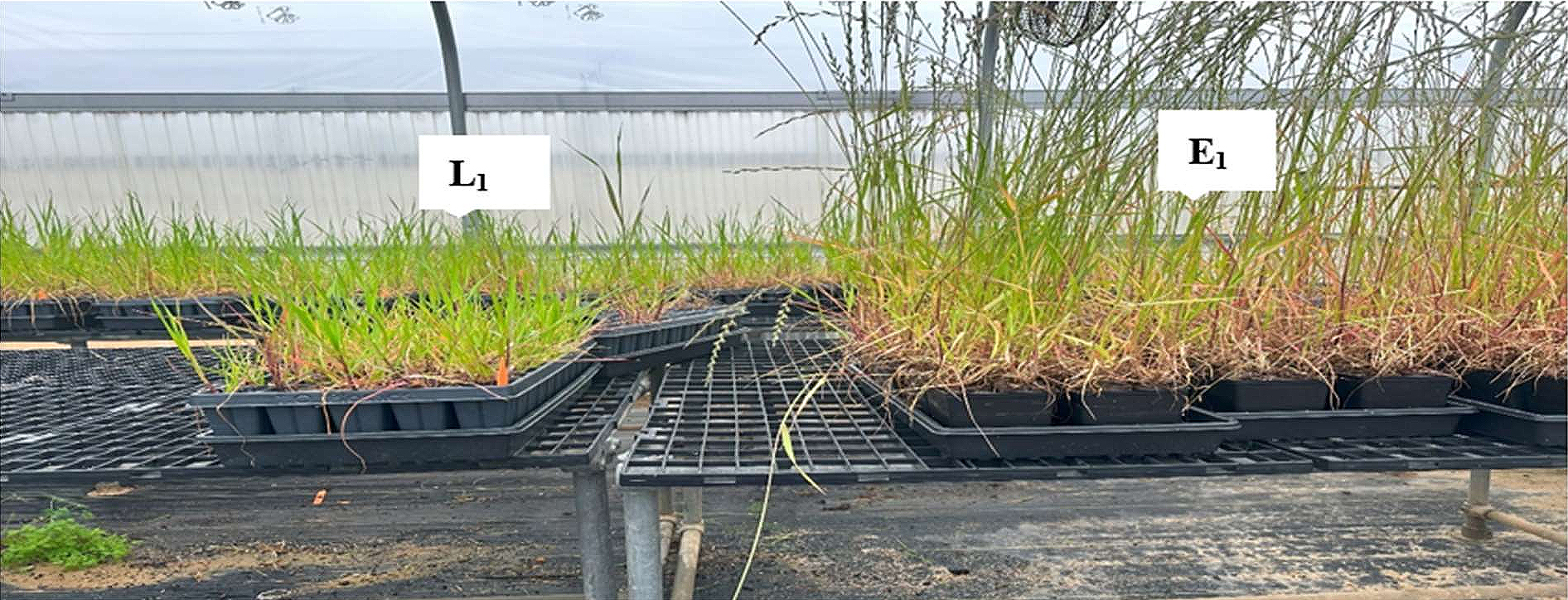 Phenotypic DifferenceThere was an observable phenotypic difference due to selection between the date of anthesis of the E1 and L1 populations grown in Cycle1 (spring 2024). Though both populations originated from the same base population, there was an obvious shift in the mean anthesis date between the E1 and L1. The phenotypic difference is such that when all the plants from E1 had completed flowering, while the plants from L1 were still in their late vegetative growth (Figure 9).
